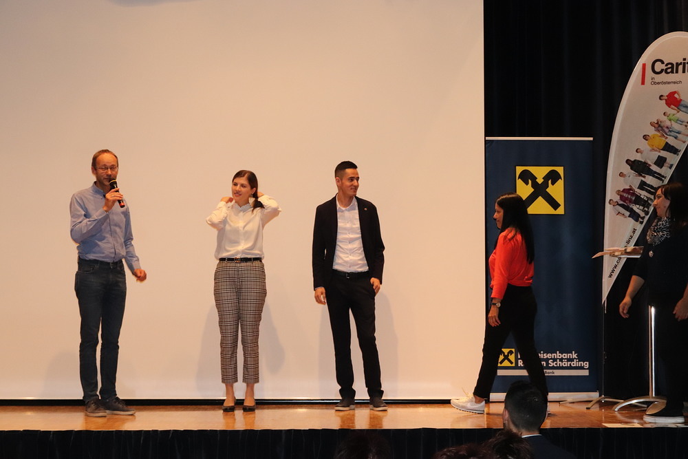 Dass Integration sehr gut gelingen kann, zeigten auch einige „Neu-Schärdinger“: Eine gebürtige Ägypterin, eine Frau aus Paraguay, ein Afghane und eine Österreicherin mit türkischen Wurzeln erzählten von ihren Highlights und Hoppalas auf dem Weg zur Integration. Die 6. Klasse des VokalBORG Schärding würzte den Abend mit einigen musikalischen Leckerbissen.